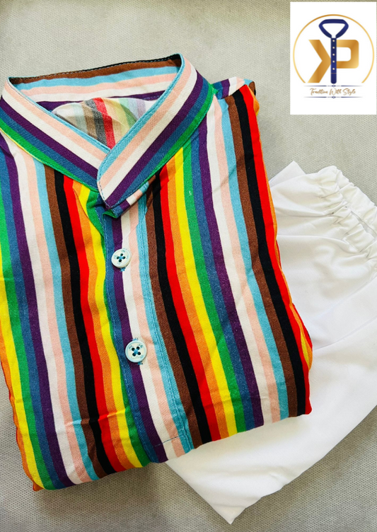 KPK7079 White Kurta and Multi Color Nehru Jacket 5-6y