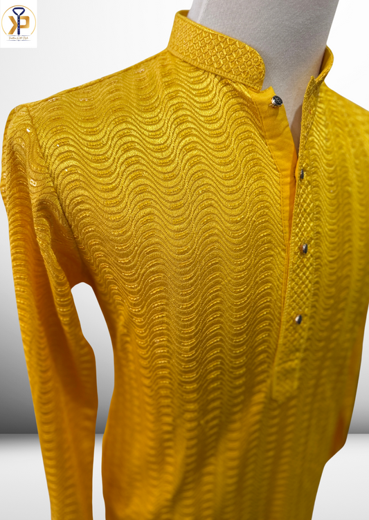 KPD6072 Yellow Luckhnowi Kurta Pyjama