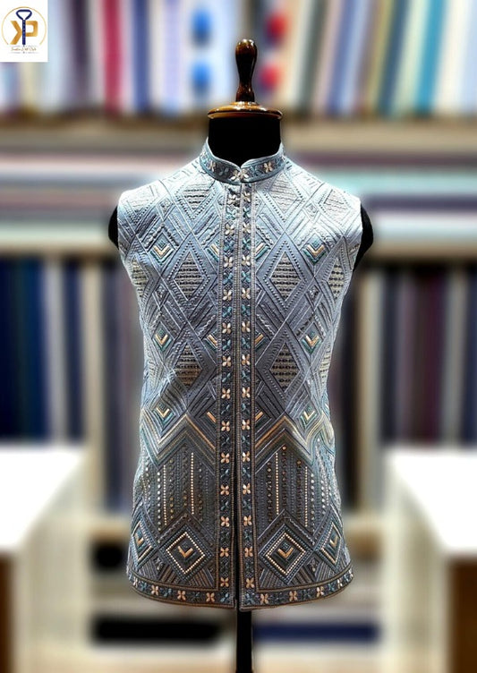 KPJ7012 Grey Designer Nehru Jacket For Men