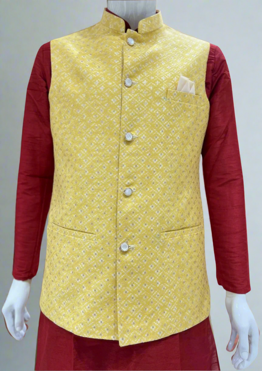 KPJ7003 Yellow Jacquard Nehru Jacket