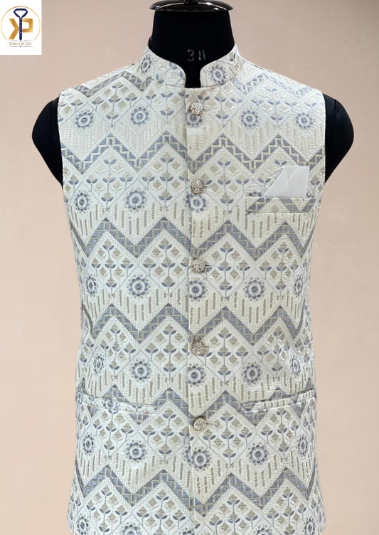 KPJ7008 Heavy Sequence and Thread Work Nehru Jacket
