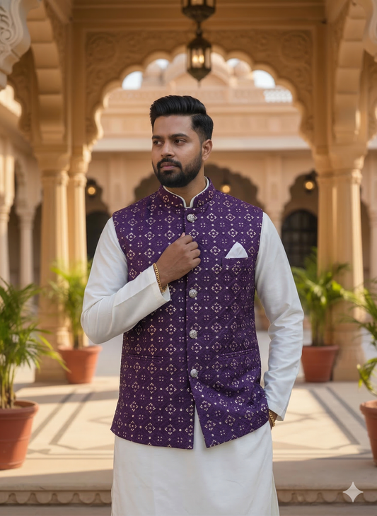 KPJ7070 Purple Work Nehru Jacket
