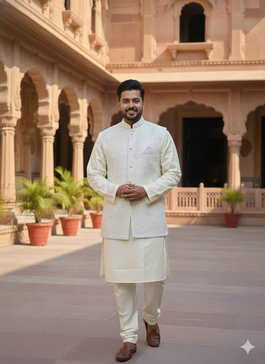 KPJ7071 Ivory Cream Nehru Jacket
