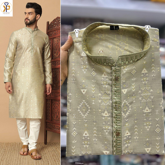 KPC1014 Green Kurta Pyjama Set With Printed Design