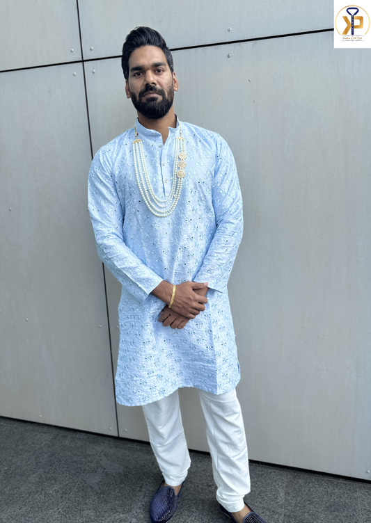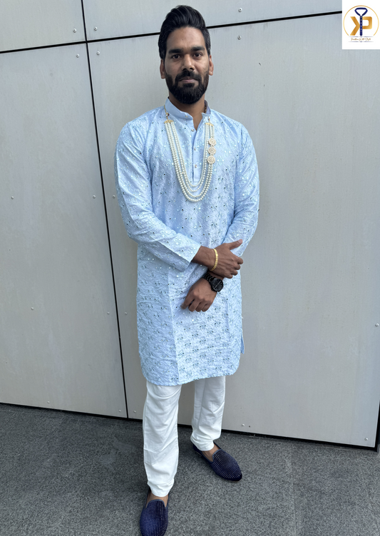 KPD4064 Plus Size Blue Sequence Kurta Pyjama Set