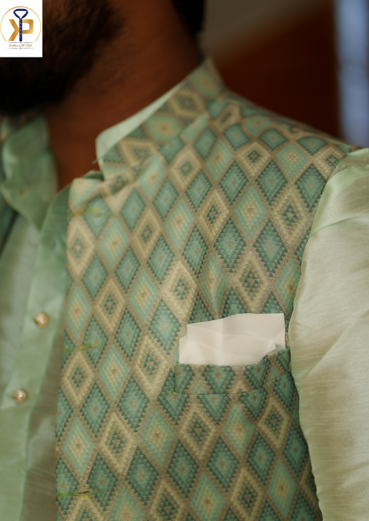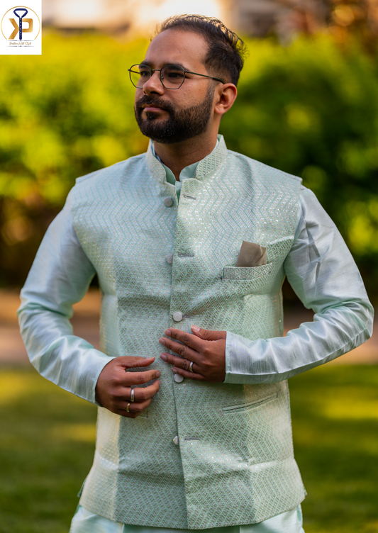 • KPD5168 Light Green Kurta and Sage Green Nehru Jacket Set - Kurtapyjama.ca