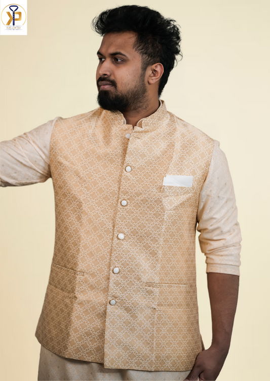 KPD5107 Plus Size Golden Nehru Jacket For Men