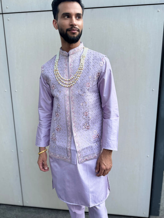 KPS3001 Grey Three Piece Sherwani Set For Men
