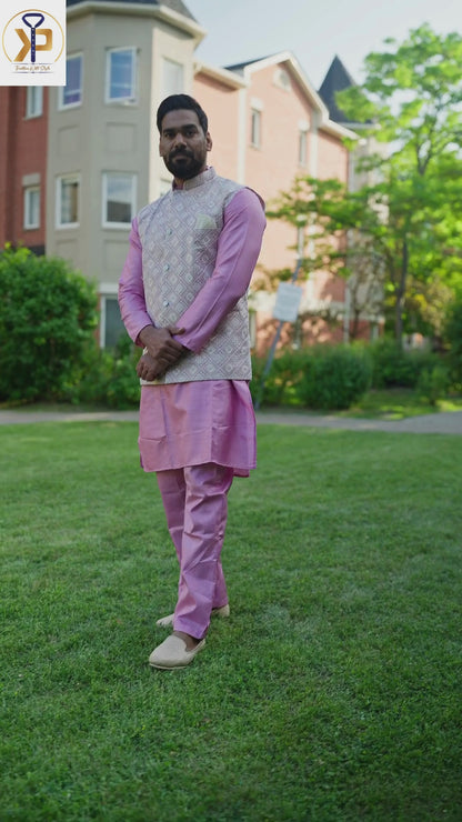 KPD5165 Pink Kurta Pyjama and Pastel Pink Nehru Jacket