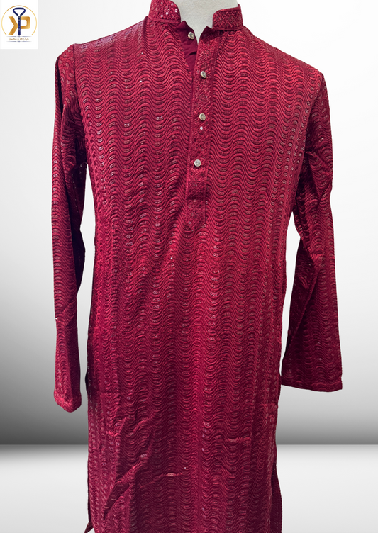 • maroon sequence work kurta pyjama for men