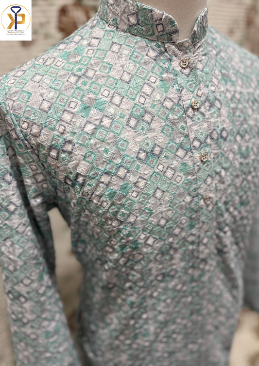 KPD6063 Men Green Mirror Design Kurta Pyjama Set