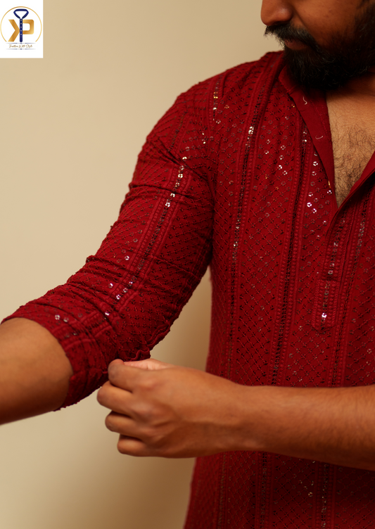 KPD6048 Red Chikankari Kurta Pyjama Set