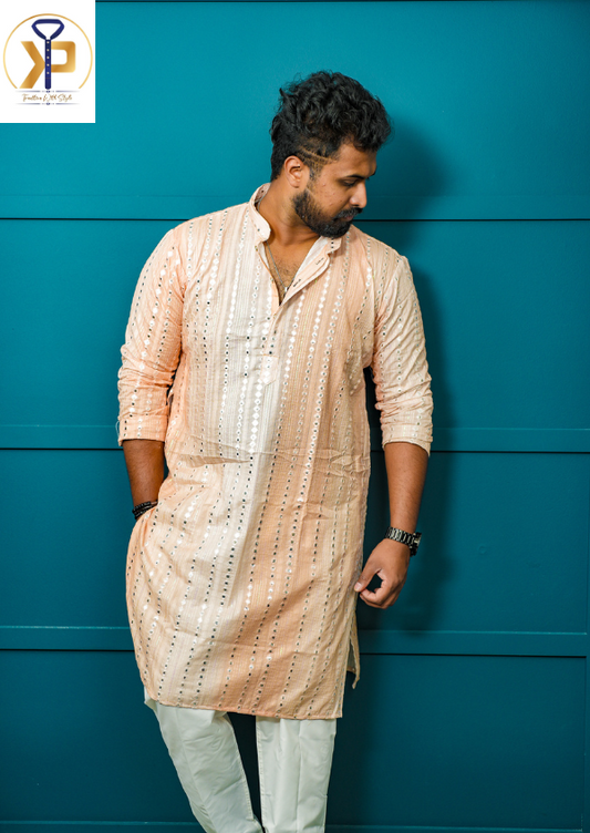 KPD6036 Men Peach Kurta Pyjama Set