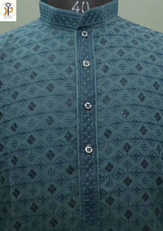 KPD6023 Sage Green Luckhnowi Kurta Pyjama