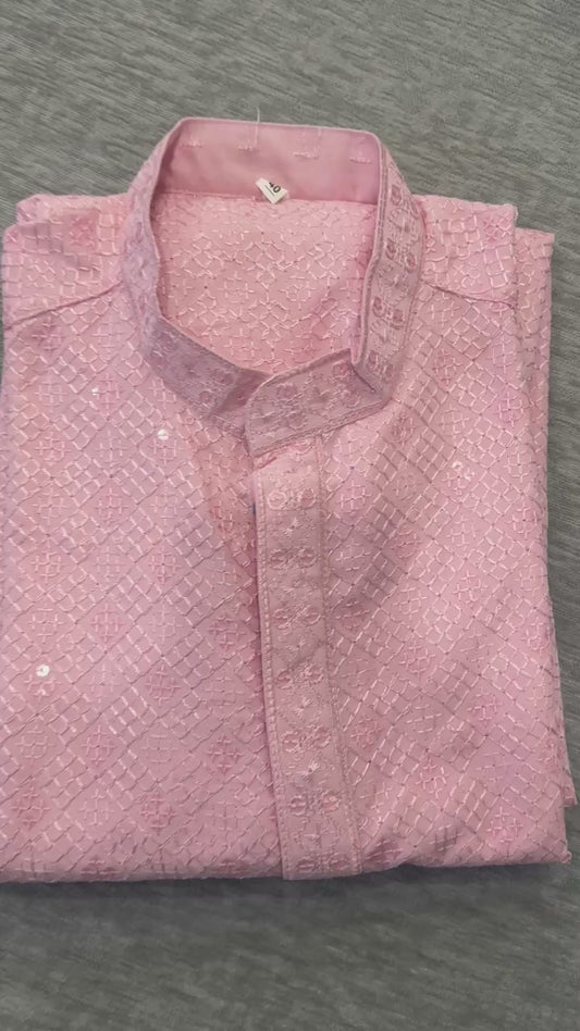 KPD6016 Baby Pink Luckhnowi Kurta Pyjama Set