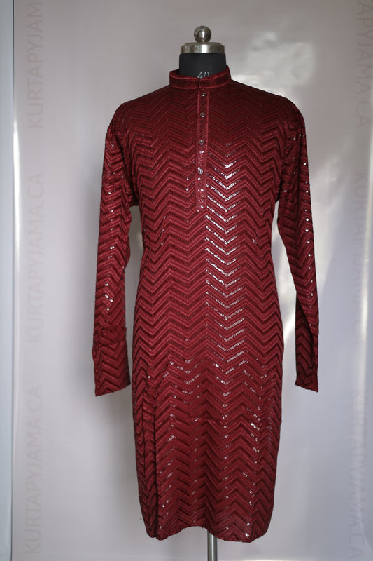 • KPD5160 Plus Size Designer Mahroon Kurta Set - Kurtapyjama.ca