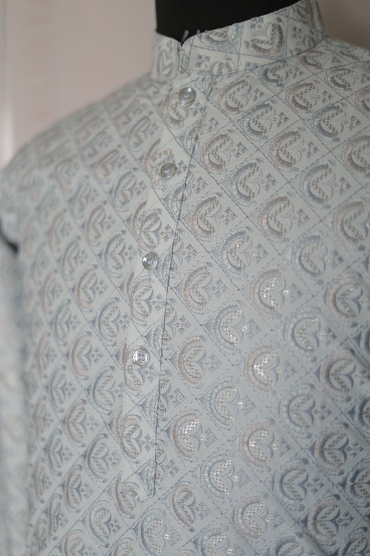 KPD6165 Grey Jacquard Weave Kurta Pyjama Set with Metallic Shine
