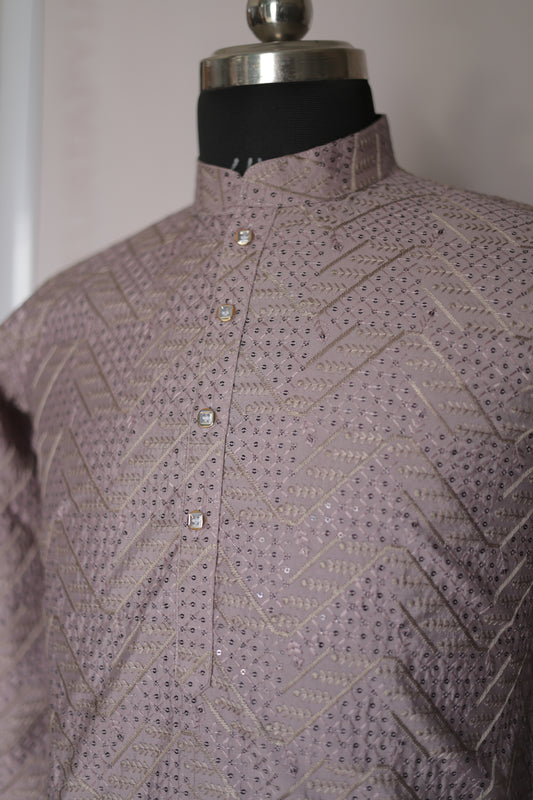 KPD6166 Dusty Lavender Jacquard Weave Kurta Pyjama Set with Metallic Shine