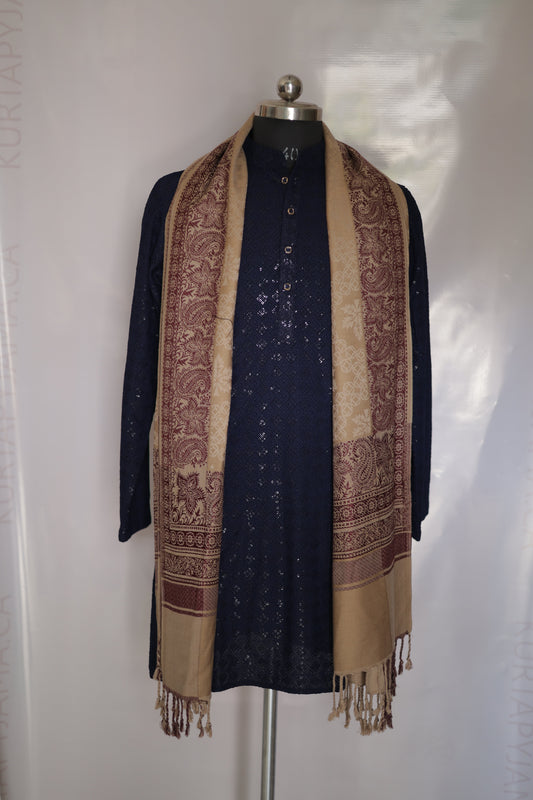 KPSH0133 Beige Deep Red Shawl For Men