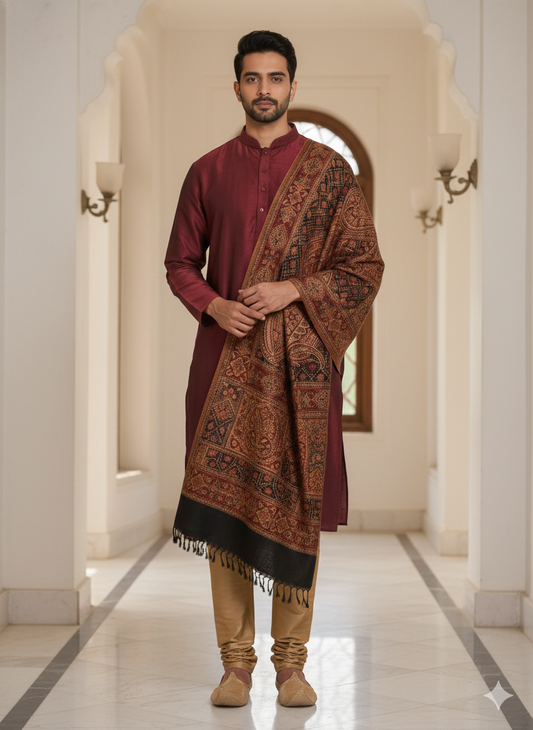 KPSH0131 Black Gold Shawl For Men